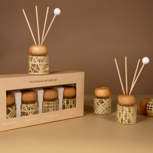 90ml diffuser in glass bottle+wooden lid+8pcs reeds in gift box