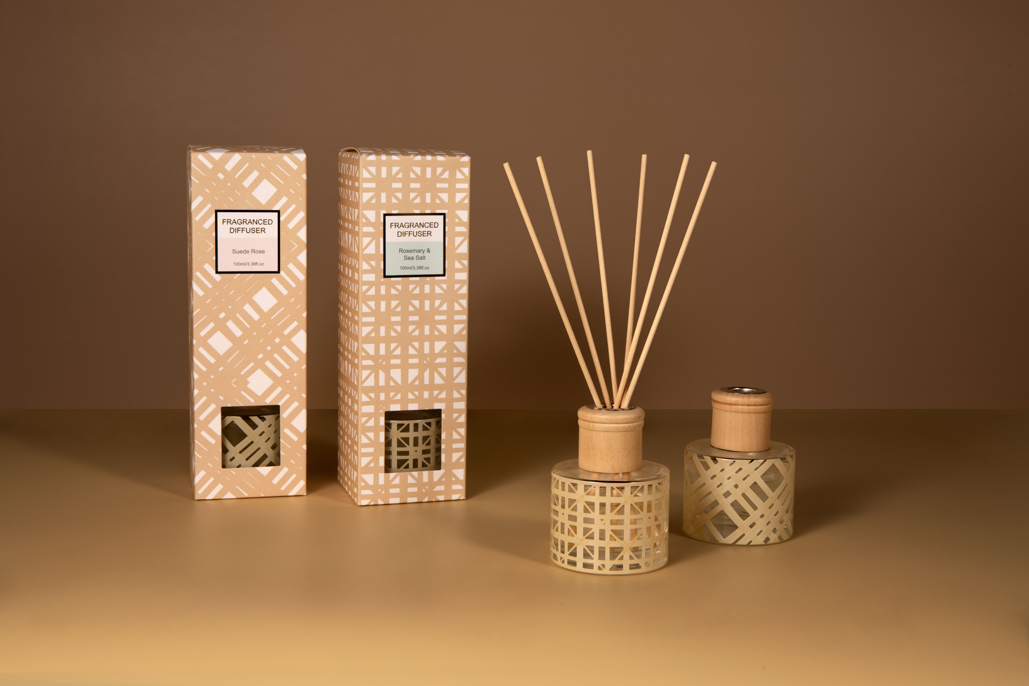 90ml diffuser in glass bottle+wooden lid+8pcs reeds in gift box